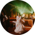Wyobraźcie sobie Was w ten wymarzony dzień, wyglądacie bosko. Tłum uśmiechniętych przyjaciół bije Wam brawo, ktoś nawet śmiało pogwizduje. Jesteście gwiazdami wieczoru. Wesele jak żywy organizm zmienia się w trakcie swojego trwania. Na początku to pełna elegancji wzniosła uroczystość, której musi towarzyszyć odpowiednia muzyka. Może smooth jazz? W kącie sali gitarzysta uderza w struny. Zaczyna grać żywa muzyka. Wasi goście są zdumieni przecież wszystkim powiedzieliście, że będzie DJ. Po uroczystym rozpoczęciu zabawy Waszym pierwszym tańcem, zabawa przechodzi w ręce kilku oddanych przyjaciół, których do tańca namawiać nie trzeba i którzy śpiewając głośno powiodą prym na Waszym balu a my delikatnie im pomożemy energicznymi setami DJskimi poprzeplatanymi graniem przy stole gdy przyjdzie chwila na odrobinę wytchnienia w szalonym tańcu.